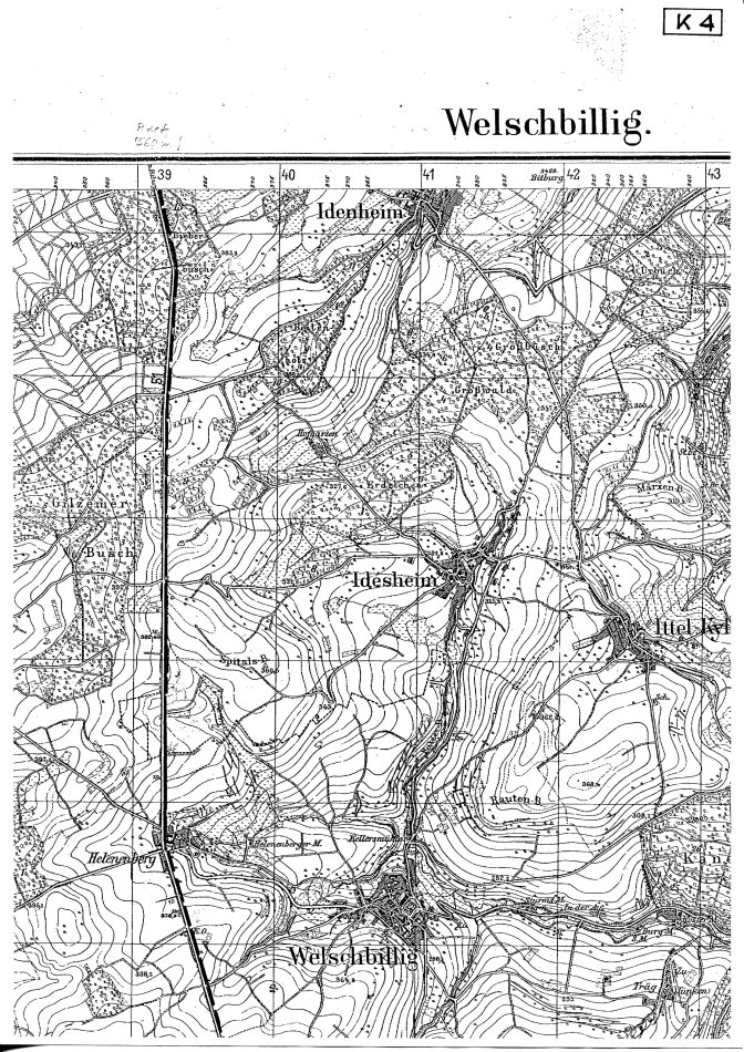Die Trasse läuft nordwärts, von einer Gemeindegrenze auf der Westseite begleitet. Steinhausen erinnert an die einstige Bedeutung im 11. Jh. : „Die Grenze des Bannforstes, den Kaiser Heinrich II. im Jahr 1023 dem Trierer Erzbischof verleiht, zieht bei Olk über die publica platea (öffentliche Straße) (Steinhausen 1936, S. 149).