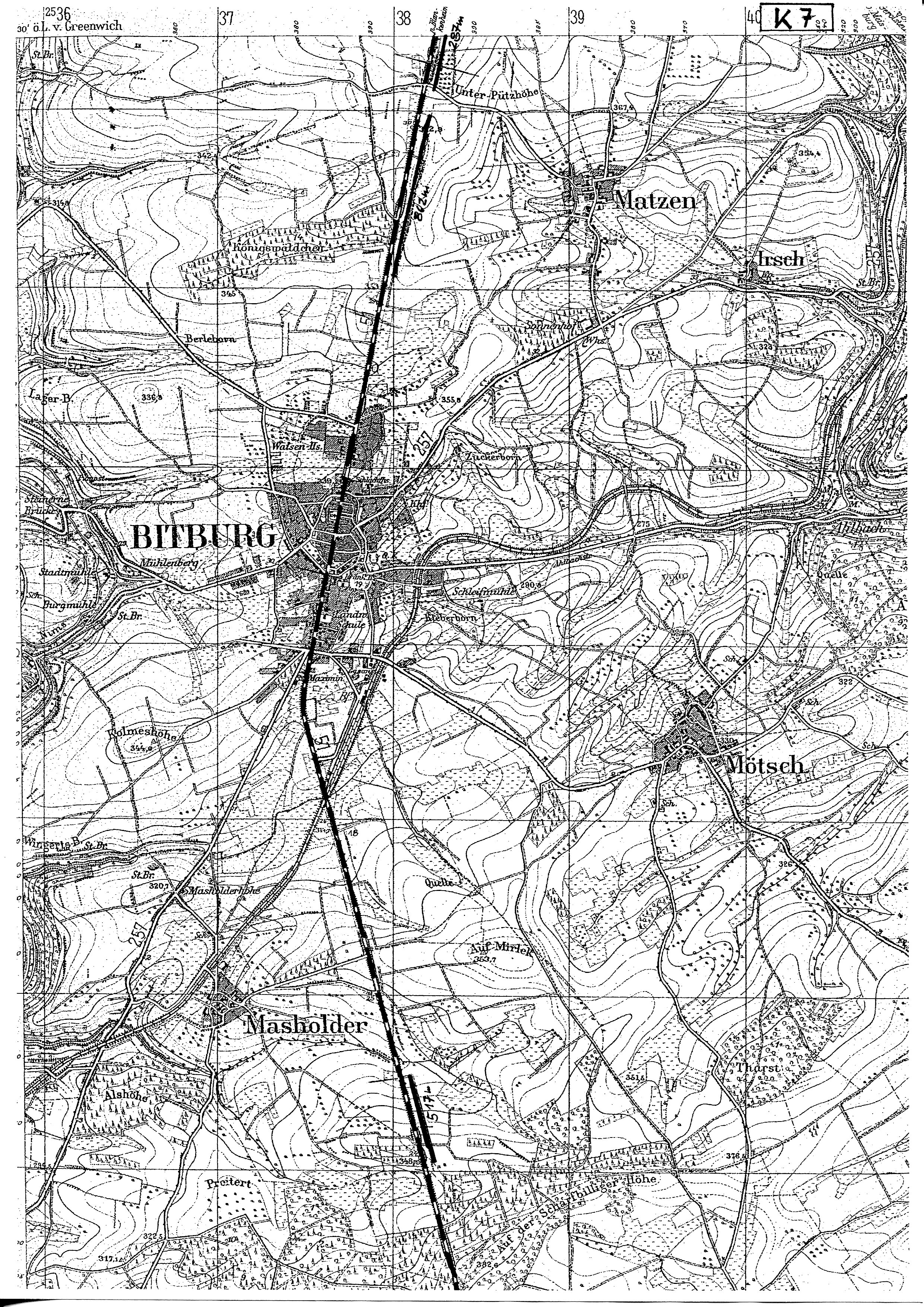 Der Straßenverlauf (III) : Meilbrück - Bitburg - Nattenheimer Barriere